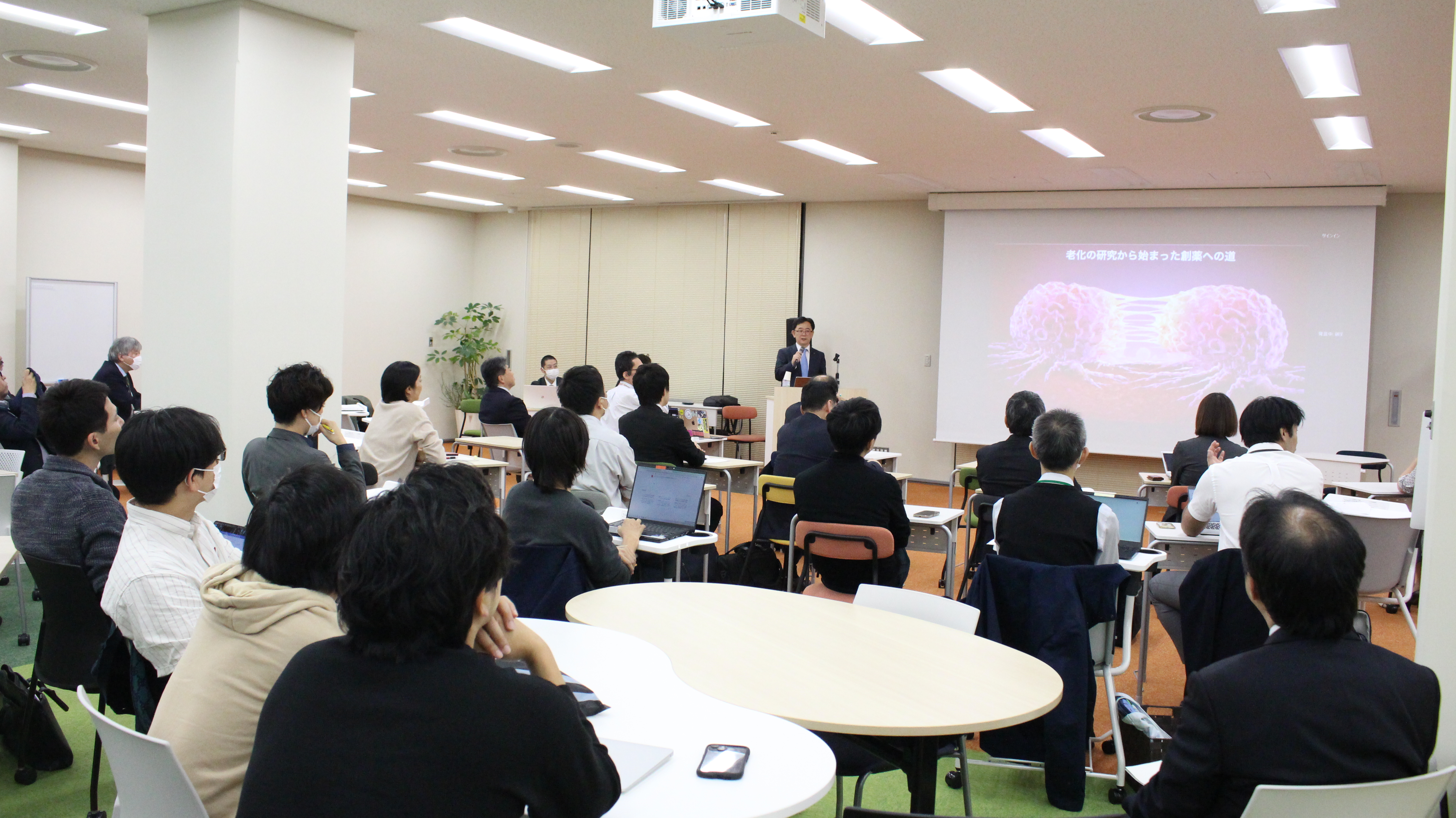 田原先生ご自身が経験された基礎研究で見出した成果(老化・発がんに関わるマイクロRNAの同定)を基に、大学発創薬ベンチャーの設立し臨床開発を行い、治療・診断として社会実装として成功された過程、またその臨床開発の過程に際して直面された治験薬製造の課題に対しても、 アカデミアによる将来を見据えたCMC支援として、グローバルGMP基準であるPSIバイオロジックス及び広島大学PSI GMP教育研究センターを設立することでハード・ソフト面とも解決を行い、その結果、アカデミアによるグローバル創薬エコシステムを形成されるという、実に有意義で示唆に富む内容でした。
