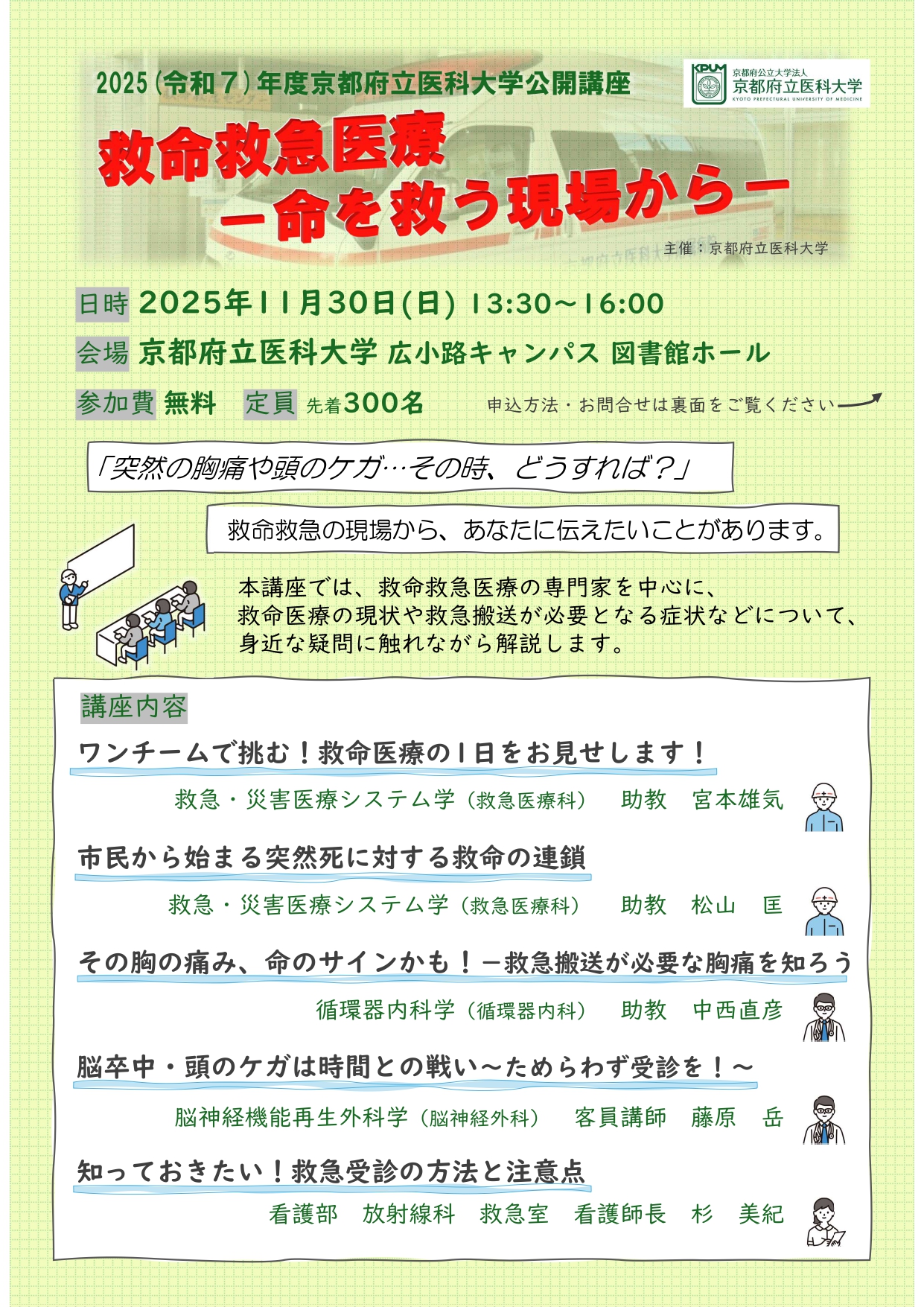 - 【公開講座】公開講座「救命救急医療-命を救う現場から-」
