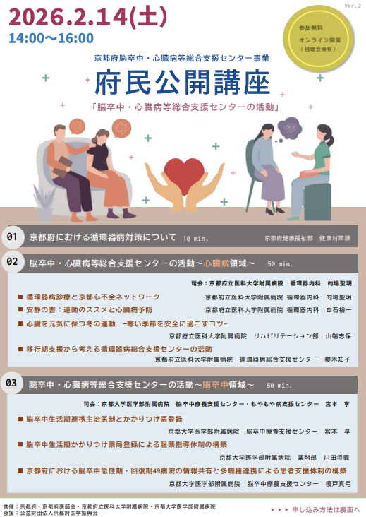 京都府脳卒中・心臓病等総合支援センター事業 府民公開講座「脳卒中・心臓病等総合支援センターの活動」開催について(2月14日(土)開催)