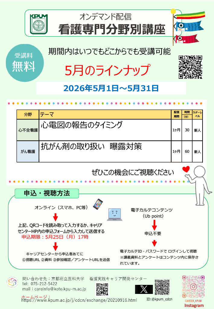 - 看護専門分野別講座(専門・認定看護師による研修の公開)