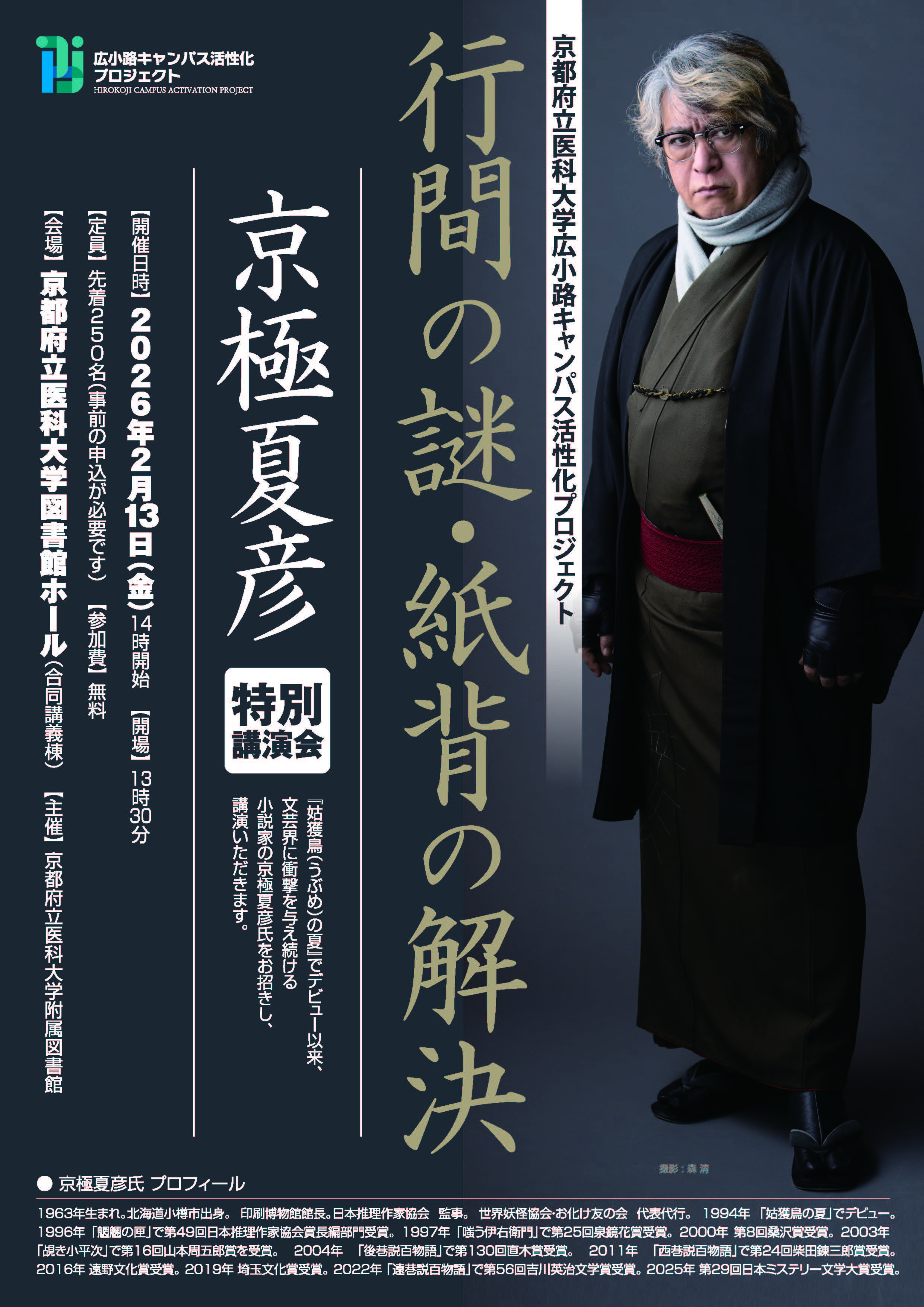 主催 京都府立医科大学附属図書館お名前、ふりがな、電話番号、FAX番号、住所、Eメールアドレスを添えてご応募ください。